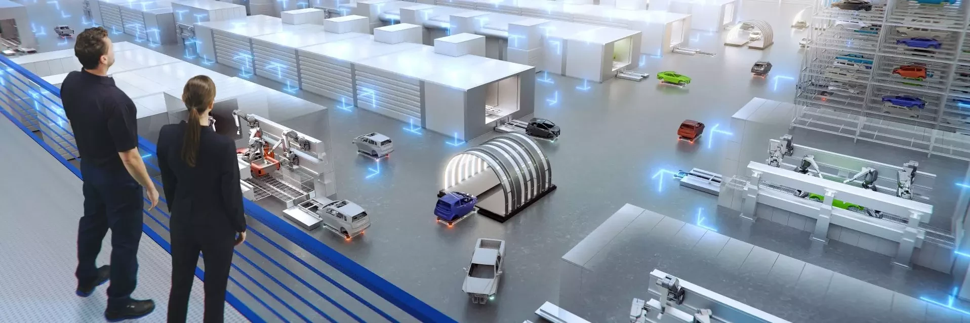The overall equipment availability also increases, since any malfunction only has an impact on the box section in question and does affect the entire production line, in contrast to the classic line manufacturing model. The variable layout also makes integrating special processes such as a special paint supply or overspray-free two-tone painting easier and more cost efficient.