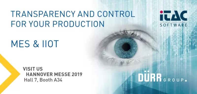 Dürr will be presenting the new digital solutions at the Hannover Messe (HMI) at booth A 34 in hall 7. In addition to Dürr Systems AG as a mechanical and plant engineering company, the Dürr subsidiary iTAC Software AG as a global MES provider and DUALIS GmbH IT Solution as a specialist in advanced planning and scheduling (APS) will also be exhibiting there alongside the IIoT platform provider ADAMOS GmbH and the digital IoT marketplace LOXEO.