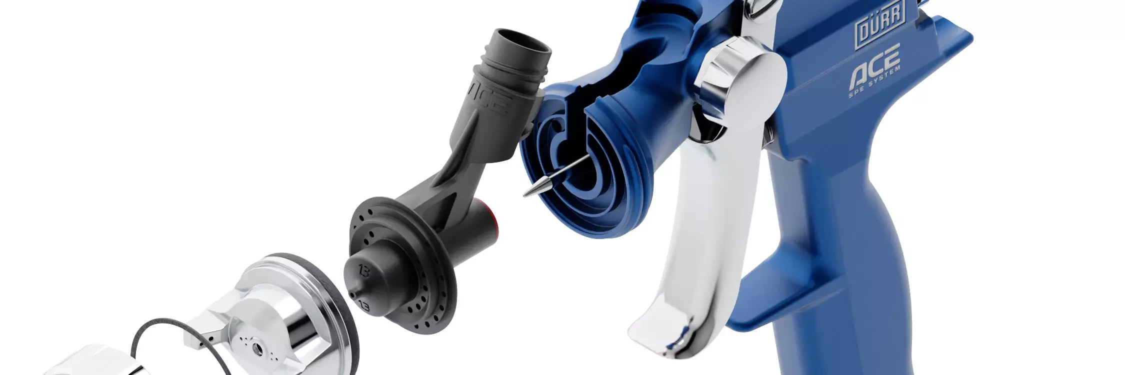 Come tutte le pistole a spruzzo a bassa pressione Dürr, l'ultimo modello, la EcoGun ACE, presenta un design robusto e adatto all'uso industriale. Offre un modello di spruzzatura eccezionale con un'efficienza di applicazione eccellente e semplifica il cambio colore grazie agli ugelli iniettori a sostituzione rapida. Un sistema di tazze particolarmente robuste e a prova di fuoriuscite, progettato da HSM Lackiersysteme, arricchisce il nuovo prodotto. Il sistema di tazze incorpora tanto un blocco di sicurezza quanto una protezione contro lo sporco, per garantire una buona leggibilità delle scale di misurazione in ogni momento. Il punto forte della nuova pistola a spruzzo è un innovativo sistema di cambio rapido del canale colore, che consente di risparmiare tempo e ridurre i costi. Il prodotto è adatto per applicazioni in vari settori, quali la lavorazione del legno e la riparazione della vernice di veicoli, nonché applicazioni nel settore della costruzione di yacht e barche.